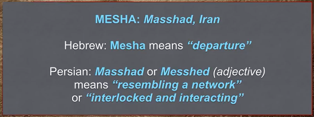 이제 메사의 위치를 확인해 볼 차례입니다. 대부분 그리스도인들은 홍수 이후 노아의 후손들이 곧 바로 시날 평원으로 옮겨가 하나님을 대적하는 바벨탑을 쌓았다고 생각합니다. 그것은 성경을 생 각 없이 잘못 읽었기 때문입니다. 창세기 11:2에서 홍수 이후 사람들이 바벨론 평지에 이르기 전에 먼 저 동쪽으로 이동하여 가다가 동쪽으로부터 방향을 전환하여 서쪽으로 가다가 바벨 평지를 만난 것 으로 되어 있습니다. 아마도 홍수 후 사람들이 동쪽으로 가다가 방향을 전환하여 서쪽 바벨론 평지 에서 서로 갈라진 곳이 메사인 것 같습니다. 공동번역 창세기 11:2에서, ‘사람들은 동쪽에서 옮아 오다가 시날 지방 한 들판에 이르러 거기 자리를 잡고’했습니다. 개역성경에는 동방으로 옮겨 간 것 으로 되어 있는데 히브리어 성경은 동방으로부터라고 되어 있습니다. 킹제임스 성경에도 from the east로 되어 있습니다.